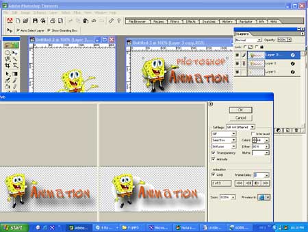 You must then... File> SAVE FOR WEB.... and then set GIF......ANIMATE....LOOP...... then use the manual frame advance or view in browser.You will then set the frame rate or leave the default 0.2 seconds or change to another rate in FRAME DELAY box.