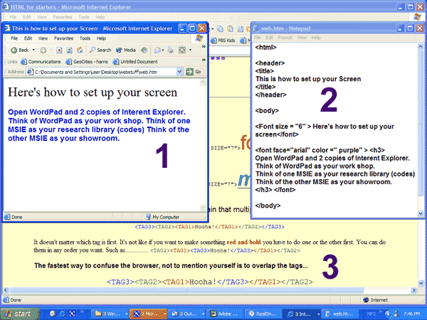 Microsoft Internet Explorer > your research library online > use this window to find tags you need, as you need them! > remember for valuable tools and resources such as images, backgrounds, animated GIFs, free service bureaus, free web space, fonts, tutorials, art history, web technology, Digital photography, and more check the tool box and our page HINT > use ALT-TAB to move around windows