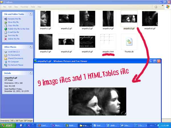 for example http://pbskids.org/ Slicing takes a large graphic image and makes it web ready slicing it into multiple images and stitching them back together into an HTML table (you don't see borders!). You start with one .jpg/.gif image and end up with 2 or more. These are renamed with a number and placed in a constructed table within an HTML document! A Very Cool Tool for