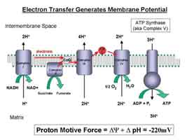 that shuttle electrons from one complex to the next. The respiratory chain accomplishes: