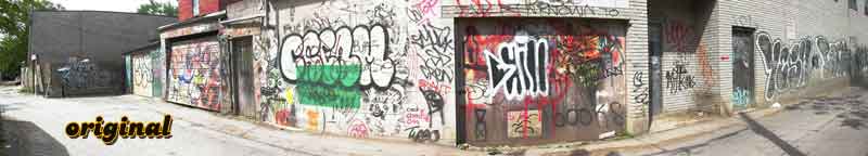 Panorama of a grafitti ally north of Dundas near AGO taken during g12 trip spring 2008 ...................> drag mouse around Image |