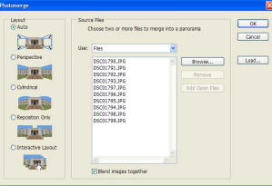 interactive virtual reality as well. Here's How 1) Carefully (tripod helpful but not required) take as many overlapping pictures as you need to show your panorama at low RES. ---- 640 x 480 is fine. (larger RES pix are fine but expect to give your computer a real workout and then if its for the web then think twice about file size issues.) 2) File > Automate > Photomerge 3) Open all the image files of your panoramic view ![]() 4) OK (make sure image blend is selected) and let CS3 work its magic! Your panorama is completed 5) You may have to recrop, smudge, or clone stamp, some fixes into the upper and lower parts of your panorama (most panoramam shots are a little dodgy around the edges Take a look at the code for this page and locate the Java portion (View > Source) Next - how to create the interactive image using a JAVA applet |