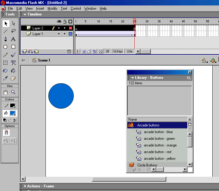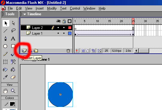 right click on Frame 25 and select "Insert Keyframe", drag the circle to a new