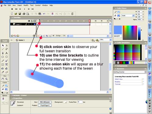Onion Skinning You can observe the transitional stages of the tween by using the onion skin function Onion skinning allows you to view the transition and make plans for modification |