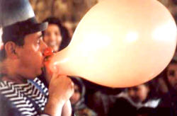 out of balloon quickly at first. Then slowly later. Apply too much air