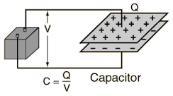 Action > Capacitors store electrical energy as an electrostatic field between the 2 plates when charge is moved from one plate to the other by a difference in voltage.