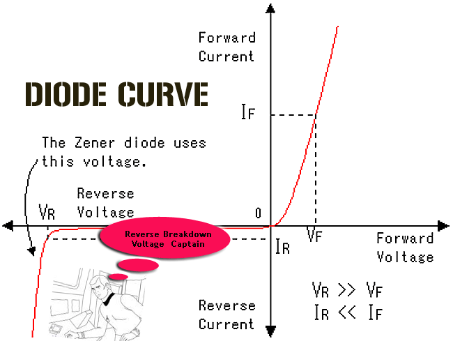 ![]() DIODES normally allow current to flow only in one direction. Zener diodes and solar cells are the exceptions and normally operate in reverse. Diode are used in many applications the most important and common is in circuits that change AC to DC or rectifier circuits found in power supplies and battery charges. Most of our electronic appliances have a power supply that conditions the 120VAC at the mains. The characteristic curve of a DIODE below shows the forward (positive voltage) bias and reverse (negative voltage) bias operating characteristics.