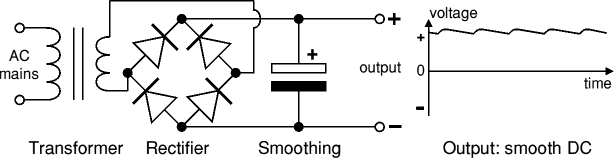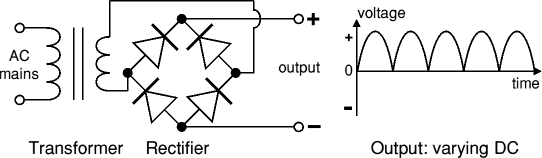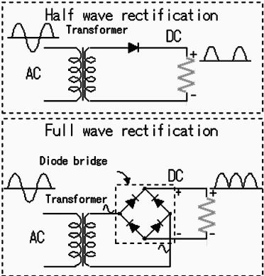 configuration creates an efficient fullwave pulsating DC output which is efficient since the full wave is captured